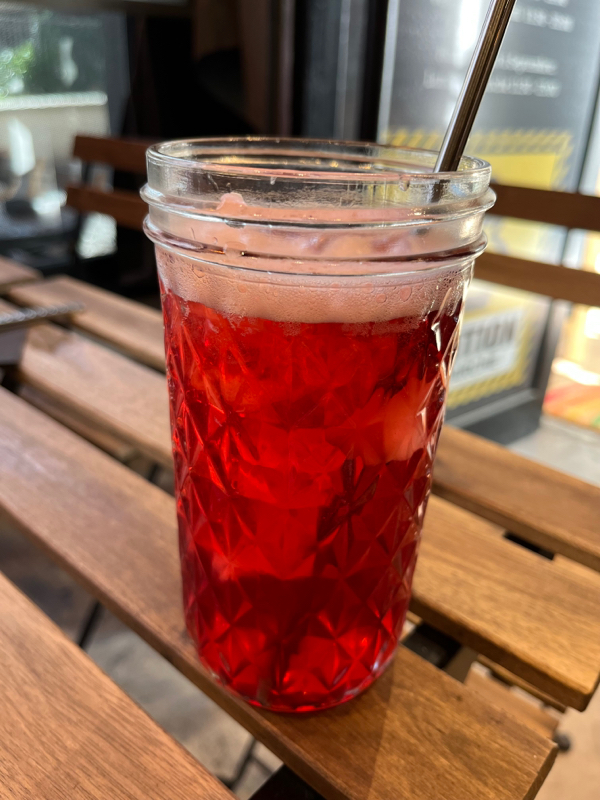 草莓奶蓋茶Thé Vert Jasmin, avec du lait, purée de Fraise et mousse à la fleur de Sel.(基底綠茶+草莓果泥+鮮奶+海鹽起司奶蓋)